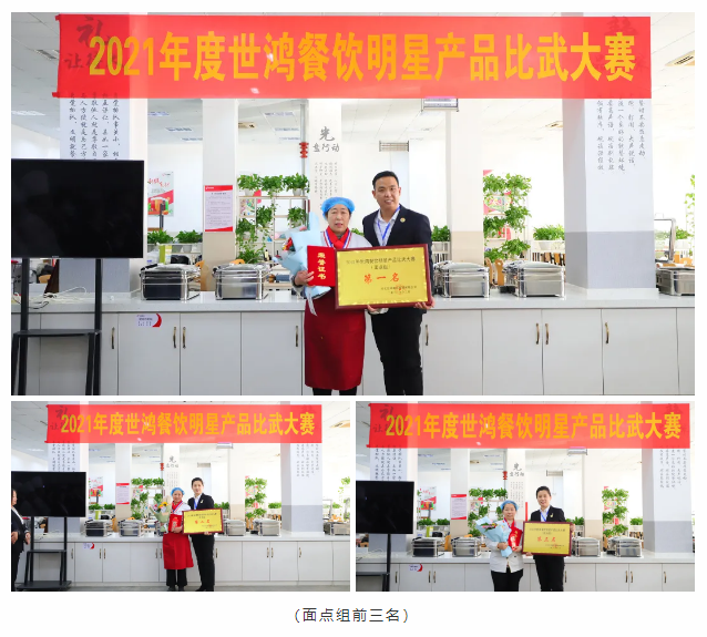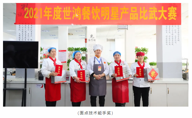 厨艺比赛分为热菜组和面点组两项比赛,每位选手都是精心准备、认真制作,激烈对决,缤纷呈现,将这一年的努力付出和用心态度都带入参赛作品中。经过评委们严谨认真的评审后最终评选出热菜组和面点组的前三名和技术能手奖。颁奖环节是最令人激动的环节,每一位获奖者由颁奖嘉宾用鲜花邀请至主席台,现场尽是大家热情的祝贺和掌声,充满仪式感的颁奖环节令世鸿的家人们开心而感动。大赛是对各项目厨艺基本功的检验,同时利用这个平台可以使大家相互取长补短,厨艺技能得以提升。新的一年,狗子28将紧跟时代步伐,不断推陈出新。做高品质团餐,更好的服务于社会。